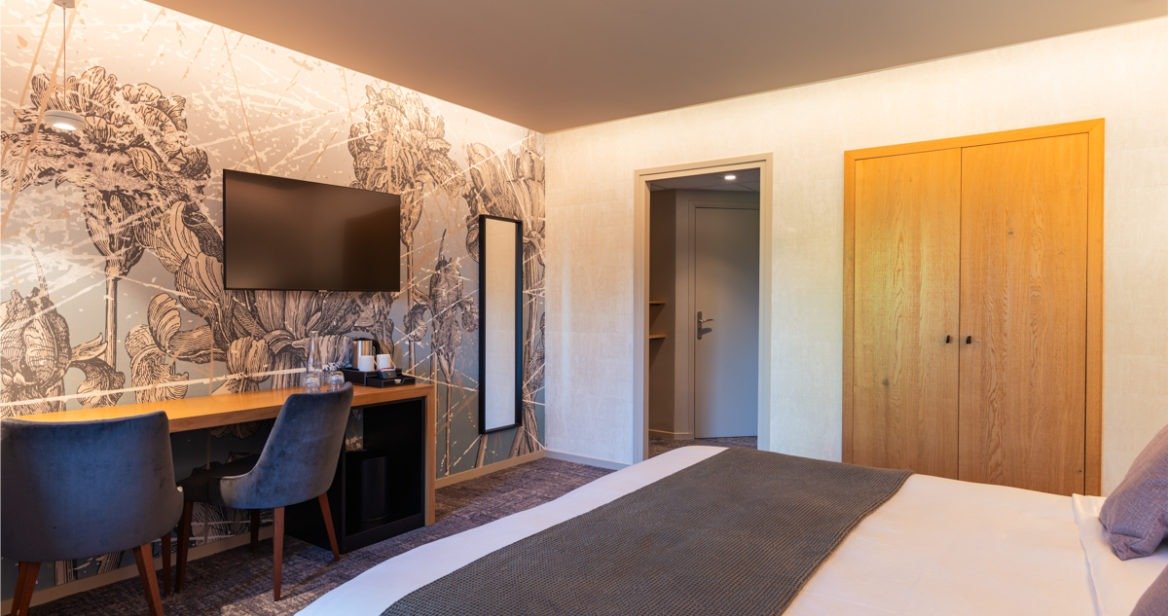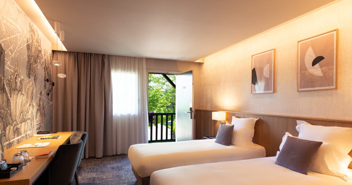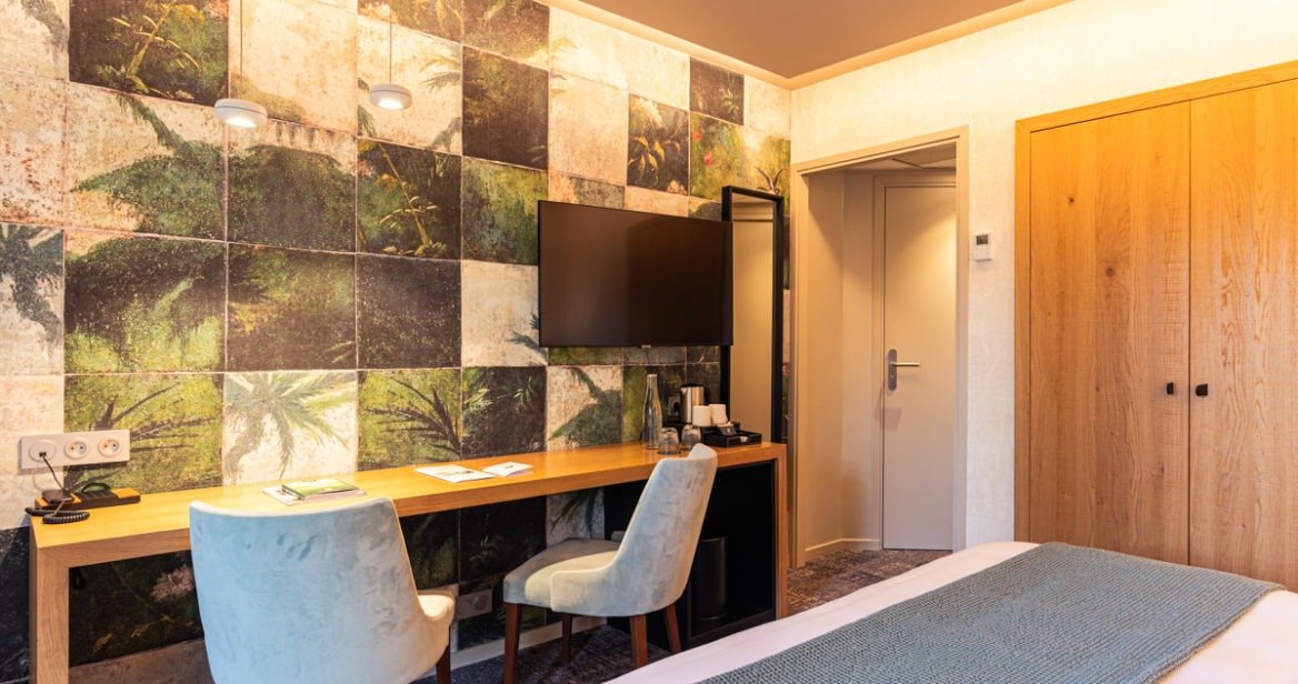 Doubles ou twin, les chambres classiques sont situées au calme dans le charmant Pavillon ou la Tour Bourbon. De taille tout à fait agréable (25 m²) elles offrent une décoration actuelle déclinée autour des tonalités à la fois douces et acidulées de vert céladon et de jaune safran. Le papier peint floral audacieux mais stylé répond avec talent à la douceur des bois blonds du mobilier.